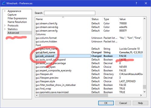 Wireshark 2.0.0 にしたら Confirm unsaved capture files のチェックを外してるのに、毎回キャプチャ結果を保存しておくかどうか訊いてくるようになった。代わりに gui.ask_ansaved を FALSE にすると訊いてこない。ちょっとしたバグっぽいな。